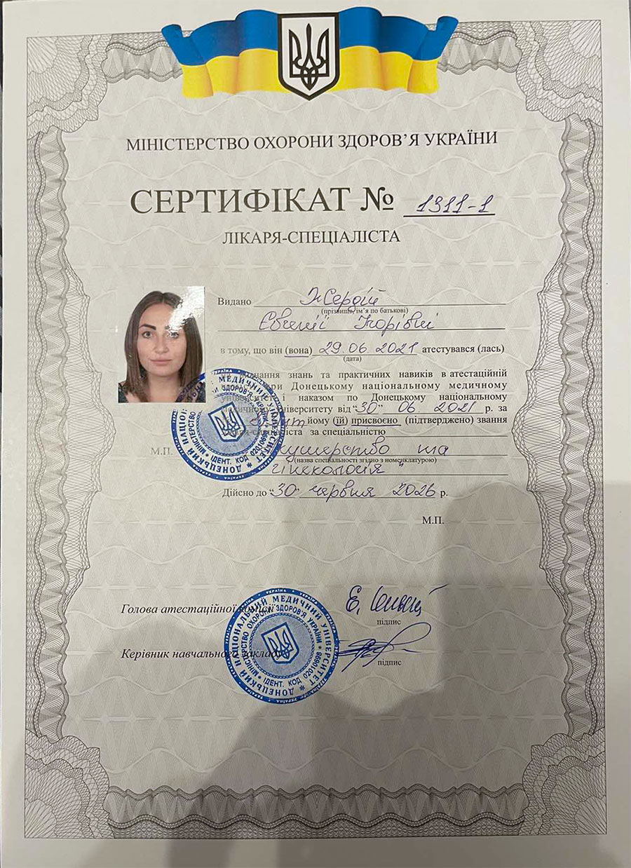 ● вер 2018 - лип 2021 - Лікар спеціаліст за спеціальністю акушерства та гінекології, Донецький національний медичний університет, Краматорськ