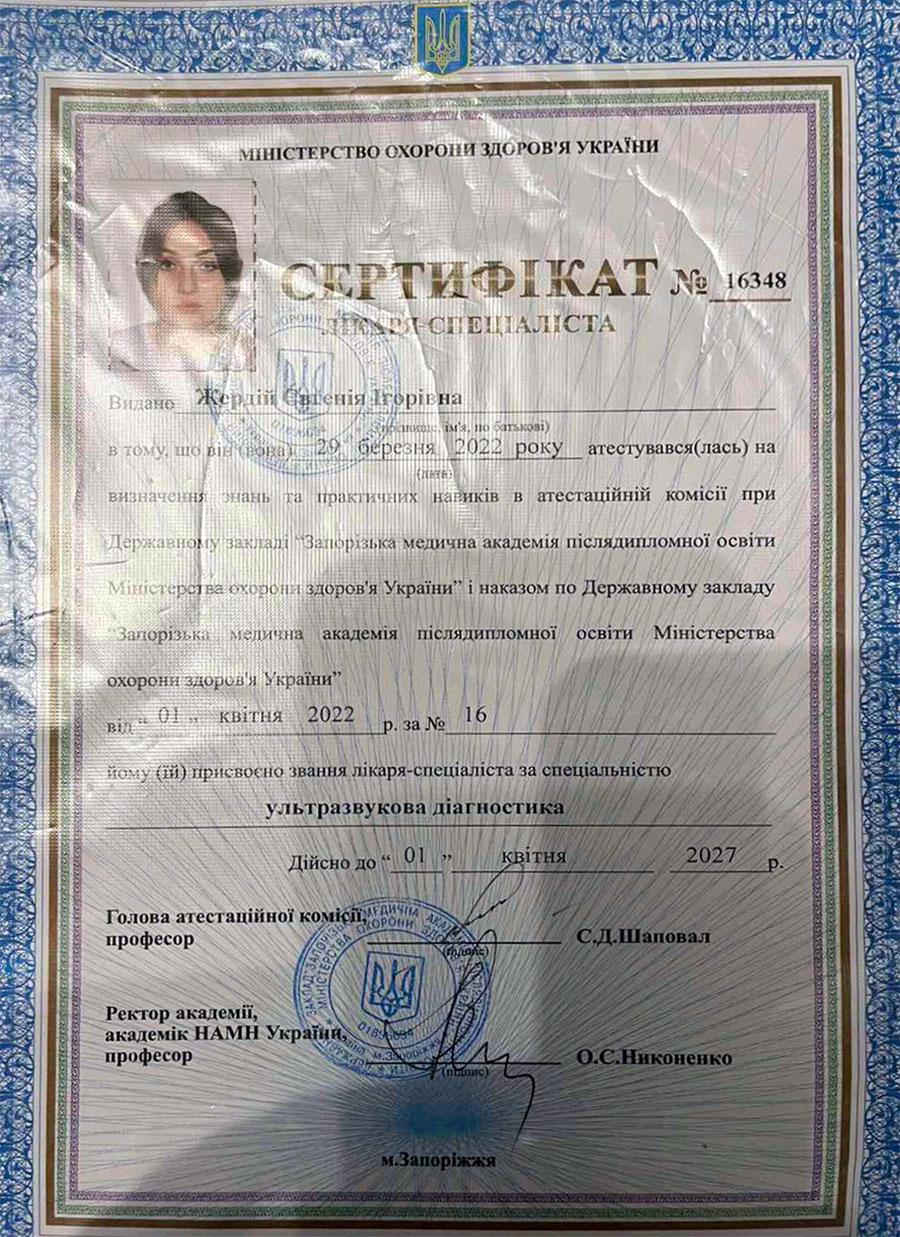 ● січ 2022 - бер 2022 - Лікар спеціаліст За спеціальністю ультразвукова діагностика, Запорізька міська зична академії післядипломної освіти міністерства охорони здоров’я України, Запоріжжя