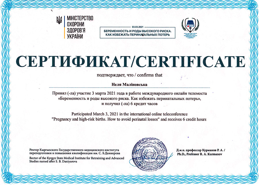 Веде прийом лікар-гінеколог Малиновська Неля Валеріївна