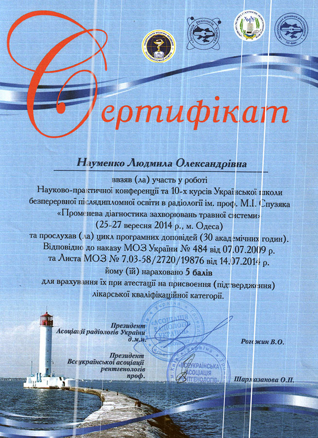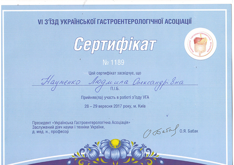 Веде прийом Науменко Людмила ОлександрівнГастроентеролог-терапевт, лікар УЗД