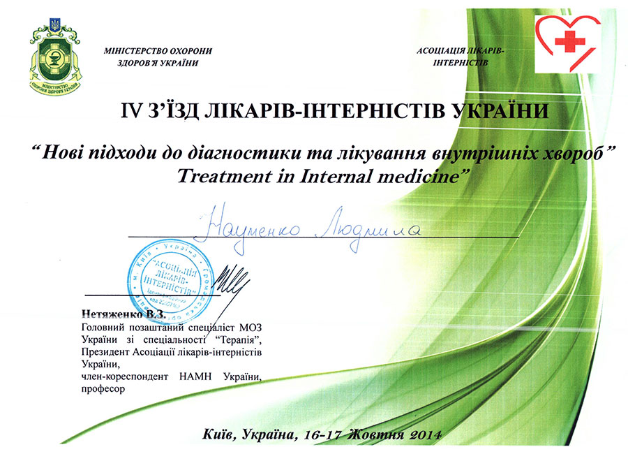 Лікар терапевт вищої категорії та лікар гастроентеролог, який має спеціалізацію і досвід проведення ультразвукової діагностики.
