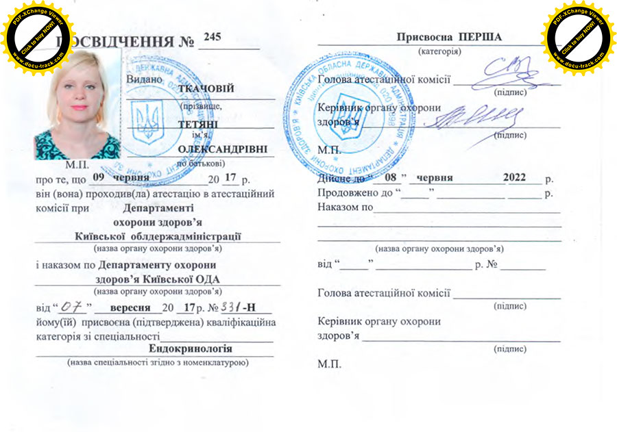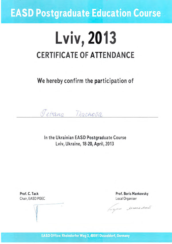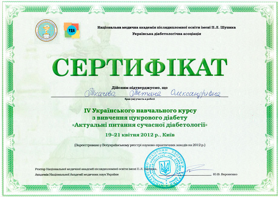2017 г. - ПАЦ по ендокринології. Присвоєно 1 кваліфікаційна категорія.