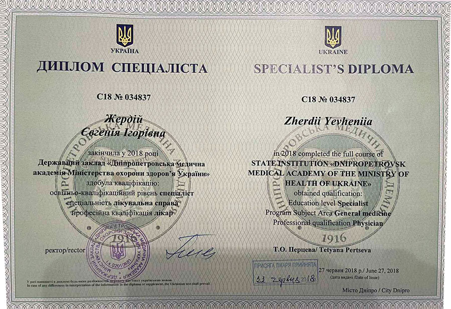 ● вер 2014 - лип 2018 - Лікувальна справа, Дніпропетровська медична академія, Дніпро
