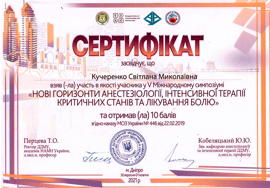 Кучеренко Світлана Миколаївна (стаж за спеціальністю – 35 років), лікар вищої категорії, кандидат медичних наук.
